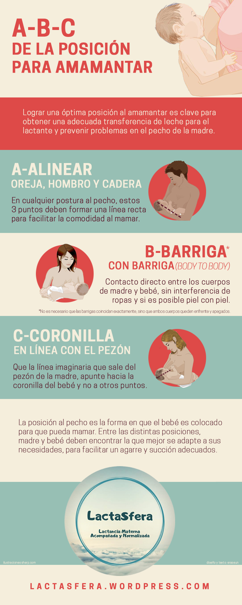 NOTA: gracias a Zule Millás, asesora de lactancia de la Asociación ‘Sina, lactancia y crianza’ de Valencia, por su sugerencia para la Infografía sobre el concepto de ‘body to body’, que facilita un excelente matiz y evita confusiones en la posición. 😉